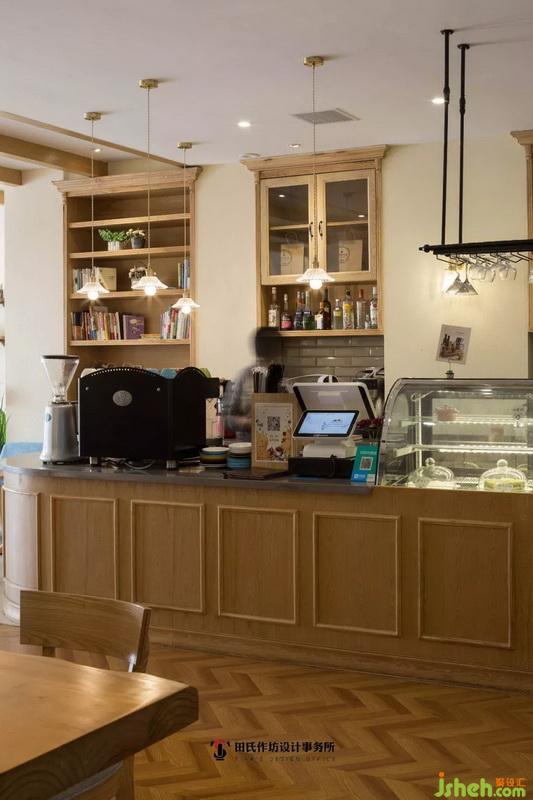 鏈條式的玻璃吊燈星星點(diǎn)點(diǎn)地裝飾著吧臺,室內(nèi)設(shè)計師使用暖黃的燈光烘托出咖啡屋的浪漫氛圍。樺木紋里的內(nèi)嵌式壁柜、暖調(diào)射燈的稱托、店主豐富的書籍積攢,這三元素的交織碰撞又增添了一抹歐美復(fù)古風(fēng)情。