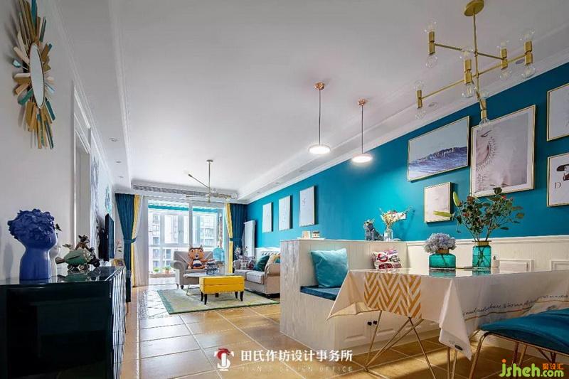 本期作品就以藍(lán)色和白色為主色調(diào),設(shè)計(jì)師則又通過少許的綠色,金色為橋梁,將房屋整體打造成了一種現(xiàn)代簡約的地中海風(fēng)格。