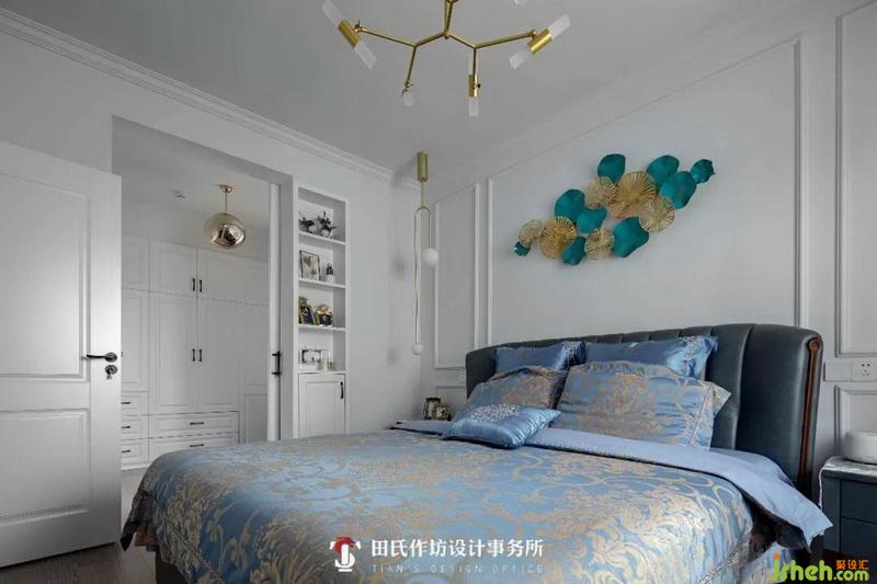 藍(lán)色緞面和金色花紋的床品給整個(gè)房間帶來了大氣,清新之感,也讓業(yè)主住的更加舒適放松。