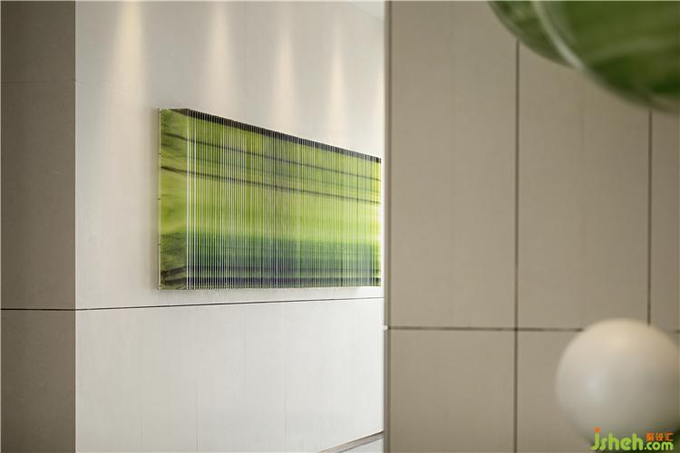 在最純粹的白中,用深深淺淺的綠色筆觸