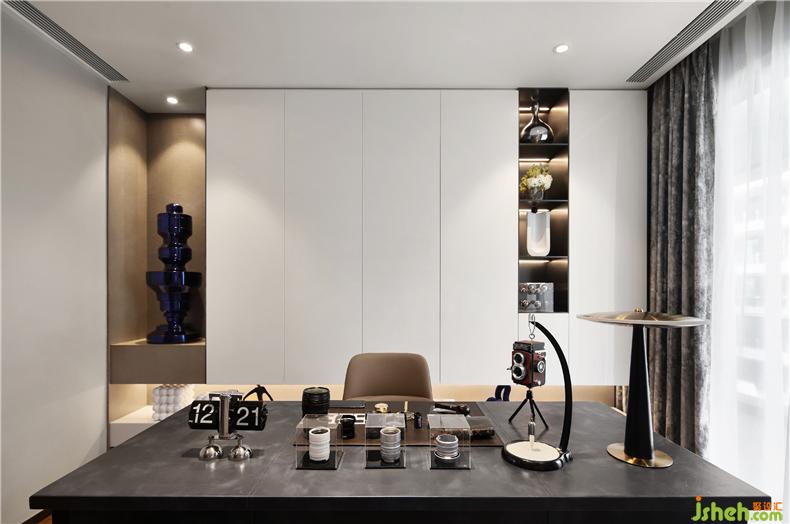 大面積的簡(jiǎn)約白色背景墻,帶來(lái)沉靜思考的留白,營(yíng)造個(gè)人專屬的創(chuàng)造空間和生活享受。