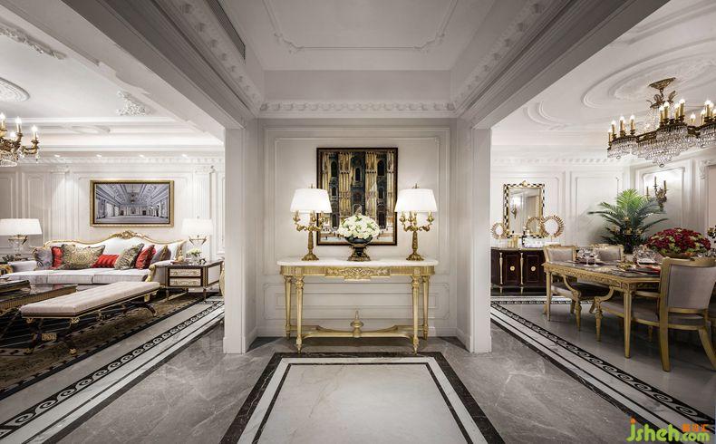 臥室延續(xù)了法式巴洛克的古典與對稱。主臥色調(diào)為淡淡的葡萄紫,高檔法蘭絨面料讓睡眠空間更加柔軟性感而不失浪漫優(yōu)雅。