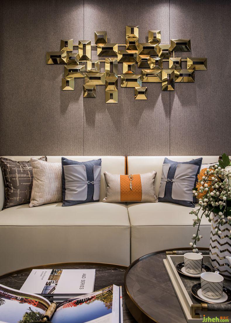 軟裝飾的細膩溫和與冷冽大理石搭配,像是理性與感性的對話。室內設計師將抽象的幾何圖形裱入畫框,給人帶來意想不到的視覺沖擊力,褪去繁復的裝飾和精巧的雕紋,與地毯回形紋路形成呼應。