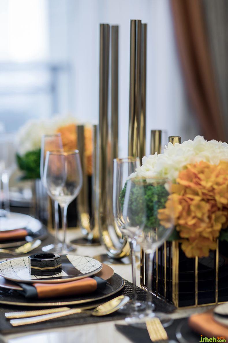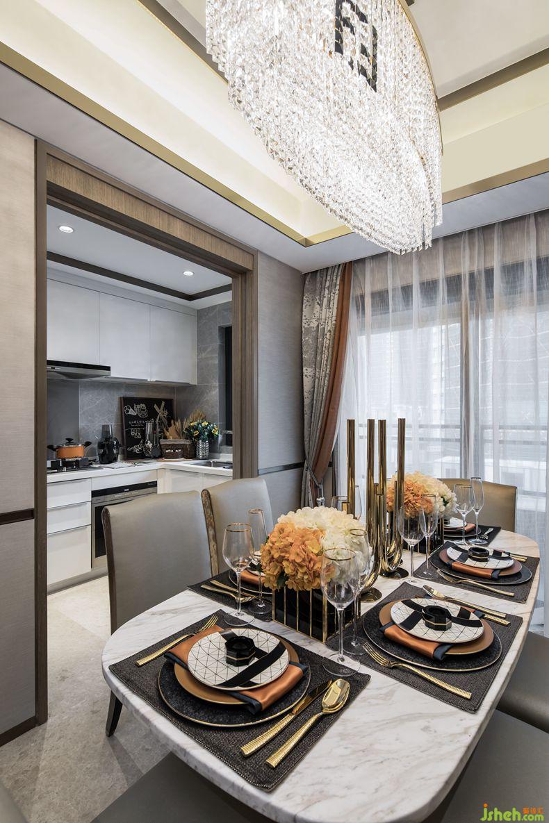 餐廳少了幾分厚重,多了幾分澄澈的香檳色。墻面裝飾鏡拉伸空間層次亦不失其造型感,不同角度的映射讓餐廳充滿活力。