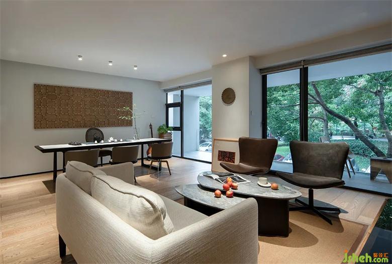 空間的生動不在于構(gòu)造的繁復(fù),而在乎就地取材、即景應(yīng)變的巧妙,改造過程中,在西面原有相對封閉的結(jié)構(gòu)上做拓展,事務(wù)所設(shè)計搭建向外延伸的敞開式露臺,外加大面積的窗面極大限度的拉近了室內(nèi)和自然的距離。