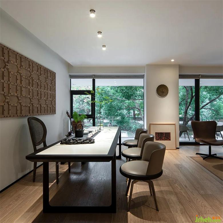 整個空間讓視覺通透性最大化,陽光肆意投入,墻和玻璃倒映著斑駁的樹影,也成了一幅幅畫布,無論人立于何處,都能更多親近自然和陽光,內(nèi)心會充盈平靜。