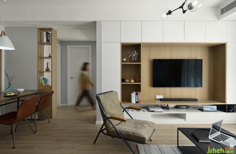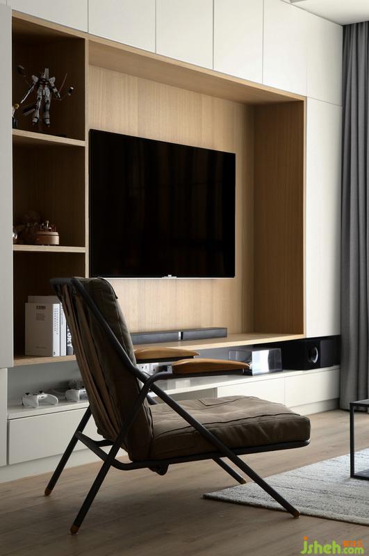▲客廳空間是一個(gè)閑適的休息區(qū),這里盡情接受著來自大自然的光線賜予,并充分利用木元素,營造出一個(gè)可以卸下疲憊的放松空間。整面儲物柜大大提升了整個(gè)空間的利用率,營造出清爽潔凈的視覺效果。