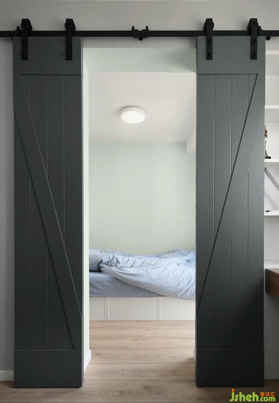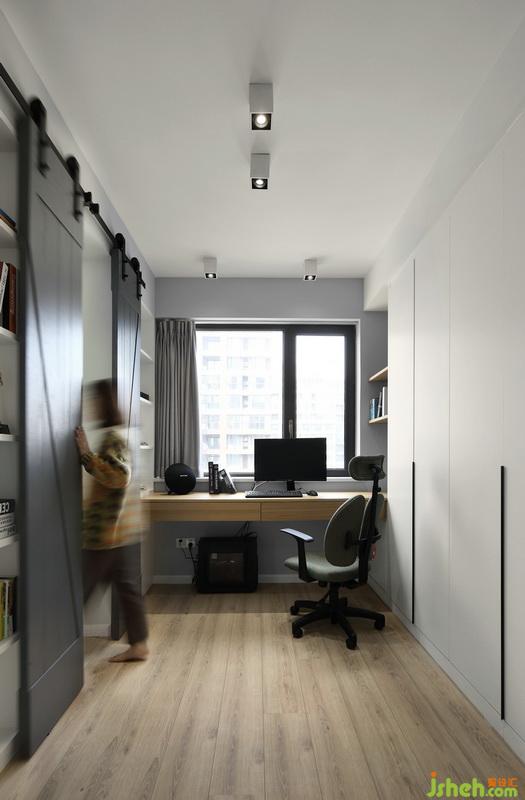 ▲書房+客房做整體性設(shè)計(jì),室內(nèi)設(shè)計(jì)師在有限的格局下,做出奇妙的能力改造。谷倉門可謂是這個(gè)區(qū)域中最匠心妙用的一處設(shè)計(jì)了,打開則是進(jìn)入到客房區(qū)域,閉合狀態(tài)下則是書柜柜門。巧妙的將一個(gè)空間瞬間拆分為兩個(gè)獨(dú)立的房間。