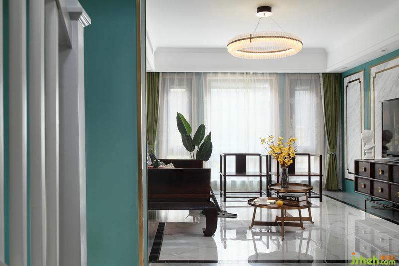 ▲新中式風(fēng)格的簡(jiǎn)約線條型電視柜及座椅,與空間中許多的線條裝飾也達(dá)到了一種奇妙的搭配??蛷d的大面積的玻璃窗,隔著紗簾透進(jìn)來的陽(yáng)光,朦朧而唯美,不論是裝飾品還是鮮花的點(diǎn)綴,都讓這里增添了生動(dòng)的藝術(shù)氣息。