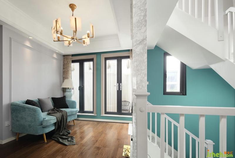 ▲二樓過道空間留出休閑區(qū)域,便于孩子看電視。而此處的背景墻設(shè)計(jì)區(qū)別于一樓客廳,簡(jiǎn)單的線條加留白設(shè)計(jì),這樣也與淺綠絲絨沙發(fā)相得益彰。三樓兒童房,室內(nèi)設(shè)計(jì)師做了爬高床設(shè)計(jì),給孩子增加游樂空間,孩子總是對(duì)于天藍(lán)色別樣的喜歡,那就給孩子一間充滿夢(mèng)幻和童真的小藍(lán)屋吧~