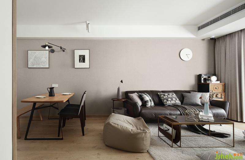 ▲餐廳區(qū)域墻上的裝飾畫不僅提升了空間的氣質(zhì),同時隱蔽了電箱。以溫潤的木質(zhì)餐桌椅搭配優(yōu)雅的灰色調(diào)墻面,營造出柔和安寧的空間氛圍。
