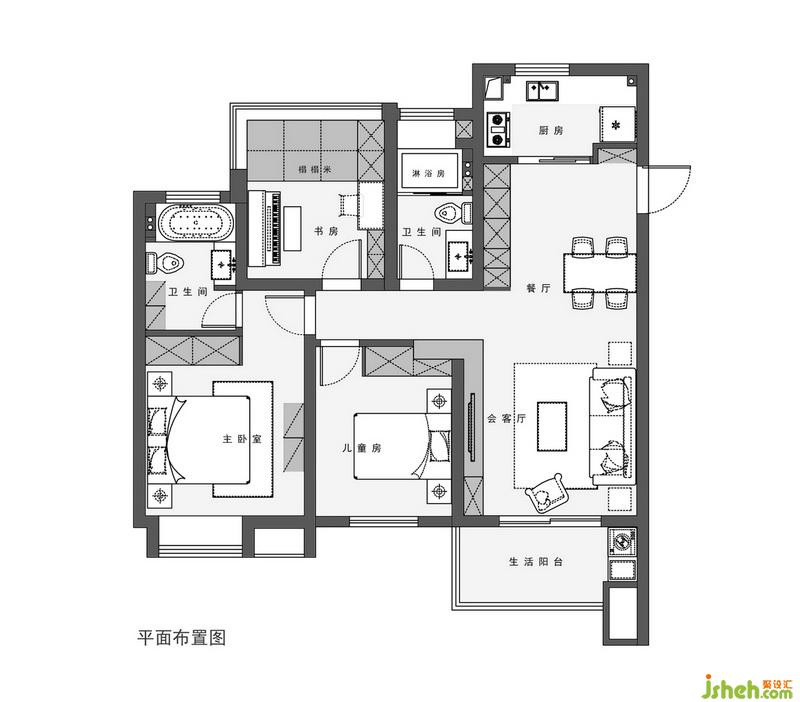 ▲書房區(qū)域,在并不寬敞的空間內(nèi),室內(nèi)設(shè)計師通過定制的家具滿足功能及儲物需求,將榻榻米、衣柜和書桌及書柜做了一體化結(jié)合設(shè)計,即便是素色空間,卻能讓人感受到溫暖而舒適的愜意生活。