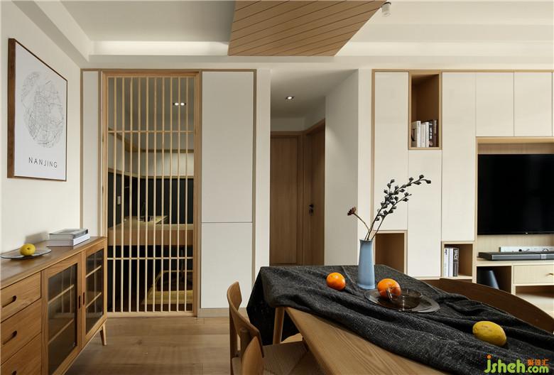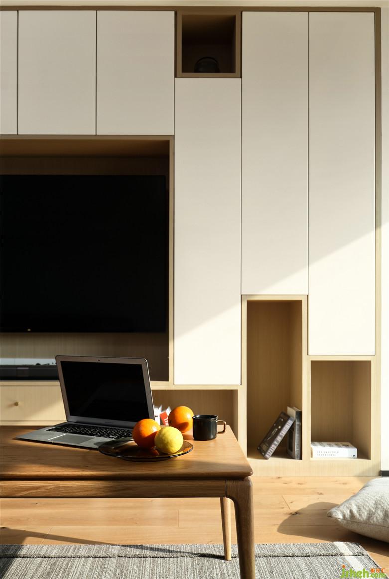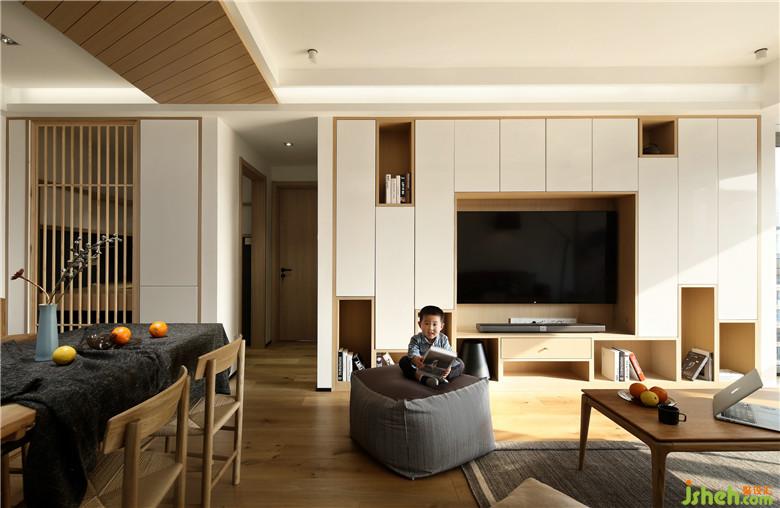 ▲大量的木與白以無(wú)造作的色彩構(gòu)筑北歐+日式自然風(fēng)尚(全屋柜體均為現(xiàn)場(chǎng)制作),同色系的白墻與白色烤漆柜門(mén)(外定),襯托出木色柜體的肌理線條。