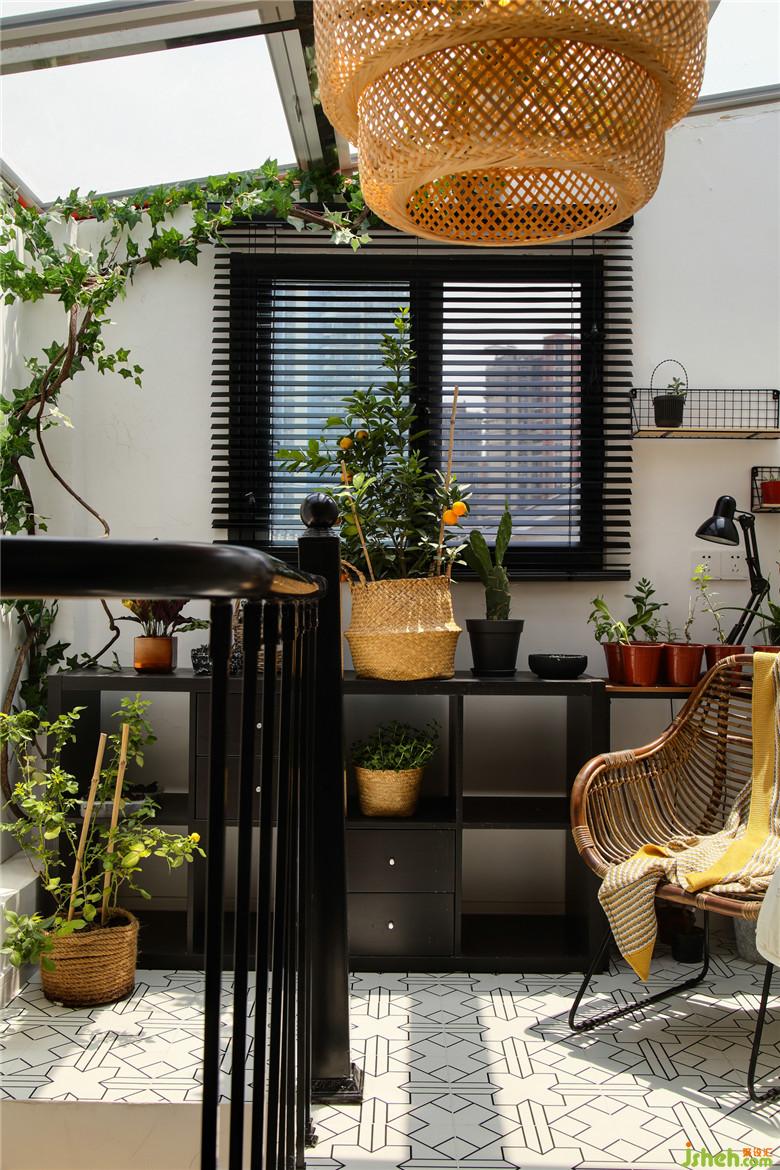 ▲原戶型的樓梯在廚房一角,空間非常狹小,在改造中,設(shè)計(jì)師將次臥室劃出部分區(qū)域來(lái)設(shè)置樓梯。原先破舊的露天平臺(tái)也改造成了一個(gè)滿滿生活氣息的小庭院。我想這是很多人心里渴望的吧。