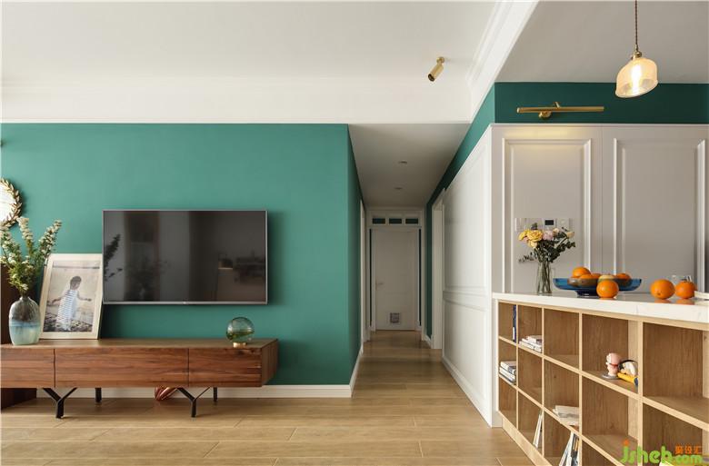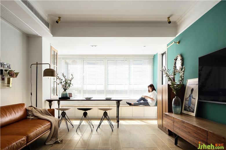 ▲室內(nèi)設(shè)計(jì)師將原本客廳陽(yáng)臺(tái)的區(qū)域打通改造成用餐區(qū),利用陽(yáng)臺(tái)外墻抽槽鋪設(shè)靠背板,增添帶了收納功能的卡座。使客餐廳部分的視覺(jué)效果更加統(tǒng)一,房屋的功能分區(qū)更加合理。一面綠墻點(diǎn)綴,其他墻面皆為白色,點(diǎn)綴上蜜糖色的沙發(fā),木色柜組,給空間染上了淡淡的復(fù)古感。