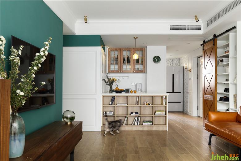 ▲走道空間綠白亮色的搭配,給人以利落、清爽的視覺感受。門體、門套以及踢腳線皆為白色。設(shè)計(jì)師為了改善通道過長的問題,在走道中部位置增加了一道門做分割作用,門楣部分采用木格樣式,起裝飾作用的也增加通透感,虛實(shí)結(jié)合又不失美貌。注意到了嗎?一道半開的門體上屋主還為家里的貓主子也留了一道門,鏟屎官們都要有這個覺悟才好~