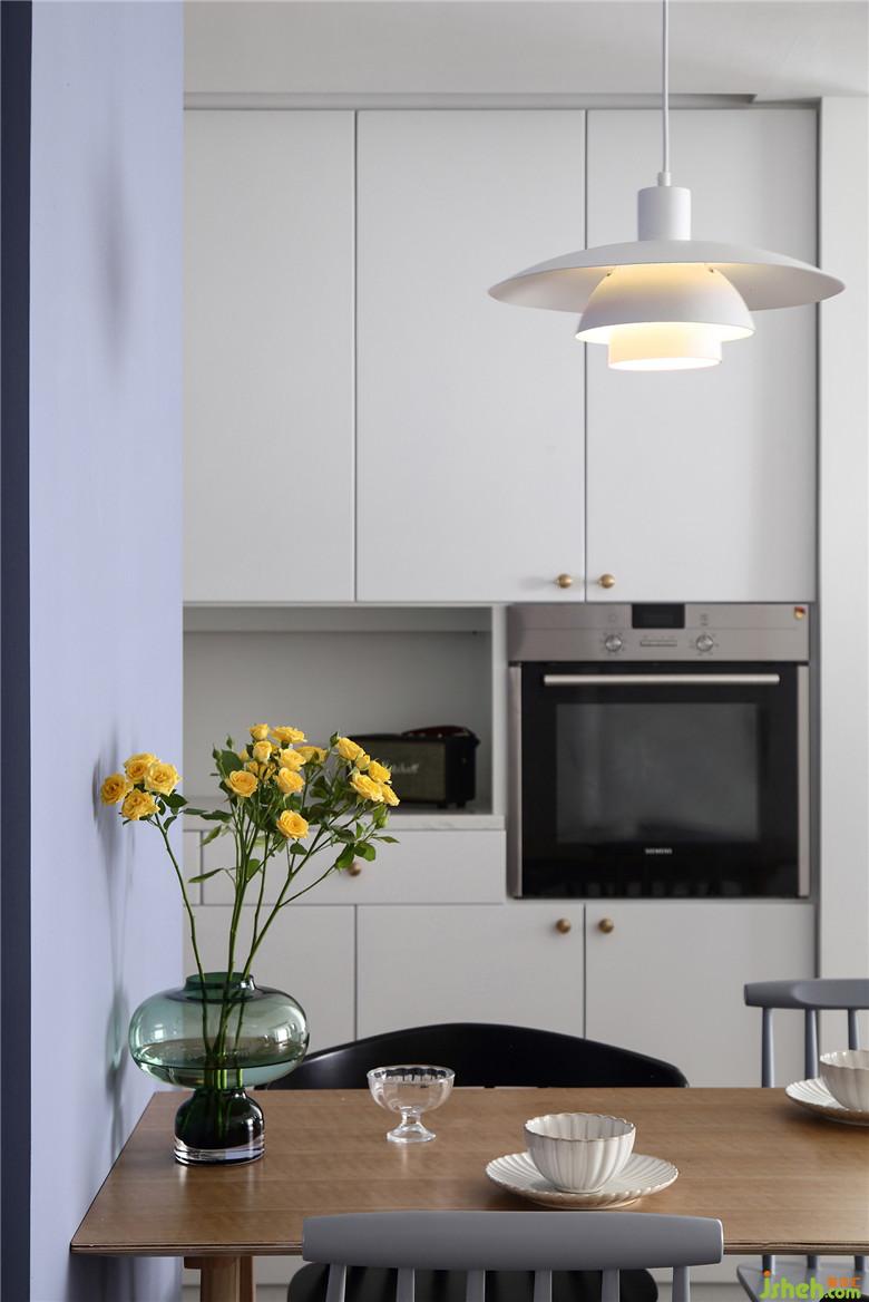室內(nèi)設計師將原本的餐廳改造成次臥,餐桌放在廚房門的一邊,家中的公共功能區(qū)集中起來,動線也更加順暢。