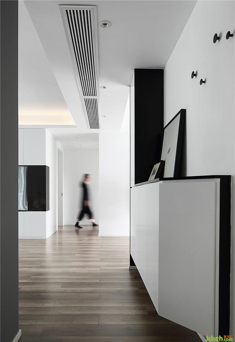 ▲入戶之后黑白的配色映入眼簾,是現(xiàn)代風(fēng)格的前奏。一側(cè)斜邊的鞋柜不會給入戶處的走道帶來壓抑感,打開空間。