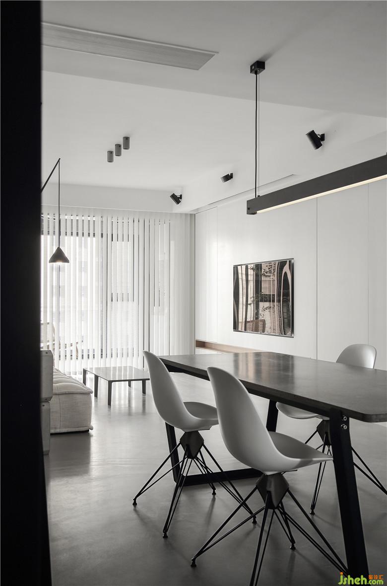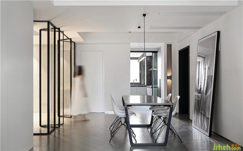 ▲光面水泥桌面被啞光鐵架支撐是不帶煙火氣的餐桌,伊姆斯餐椅凝固出現(xiàn)代都市感,椅腿的設(shè)計感給簡約的餐廳帶來線條的美感,是粗獷意味的細致與氣質(zhì)的混搭。業(yè)主自己拍攝的大幅照片,倚在白墻上,是十分具有個人氣質(zhì)的裝飾物。