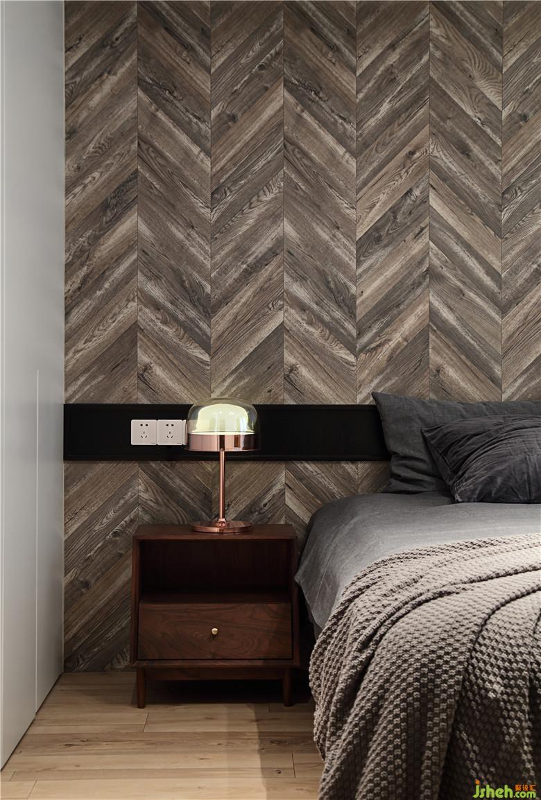 床頭背景墻室內(nèi)設(shè)計(jì)師采用地板上墻“小人字型”拼接,天然的紋理再由人工組合為白色空間的臥室拉近了與人的距離感,溫暖可親,臺燈玫瑰色金屬與玻璃結(jié)合的造型是生活中點(diǎn)滴的浪漫情懷。