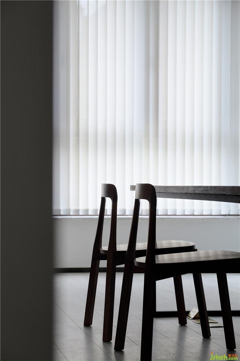 ▲墻體向餐廳的推移,為主臥留出足夠柜體空間,收納柜選用白色烤漆柜門,落地柜采用黑色長拉手避免白色過多的蒼白感。