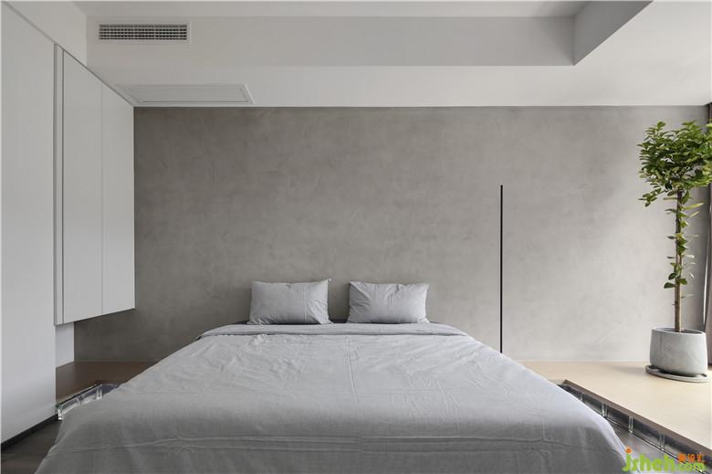 ▲主臥床頭背景墻設(shè)計師選擇了磐多魔墻面涂料,清水灰的細膩讓空間呈現(xiàn)出優(yōu)雅清爽,簡單又樸素的別樣感受。主臥與餐廳的分割為家中增添了獨立的洗滌晾曬區(qū)域,也為臥室保留了一處榻榻米,讓主臥空間更富變化。