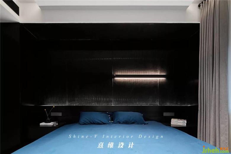 ▲床頭背景為通體黑色,上半部分是黑色的啞光烤漆長虹玻璃,細(xì)密的條紋從深沉中透出層次,如同低垂的夜幕為每夜的好夢提供庇護(hù)。