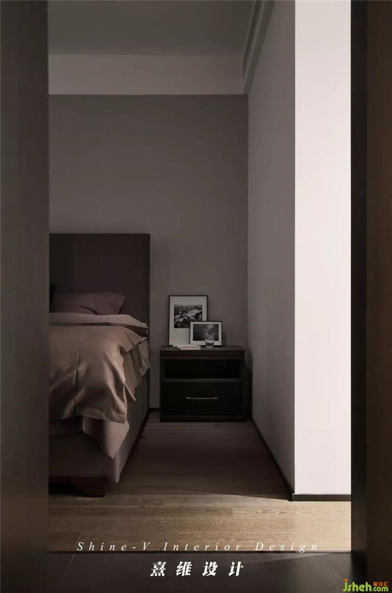 ▲多了一扇門的主臥,去往客廳、陽臺不再需要兜一大圈。由客廳中延續(xù)而來的胡桃木雙飾面鋪陳在主臥的電視背景墻上,木色在夜晚更顯沉郁,浮躁被摒棄,沉浸在專注平和里,不受外物干擾。