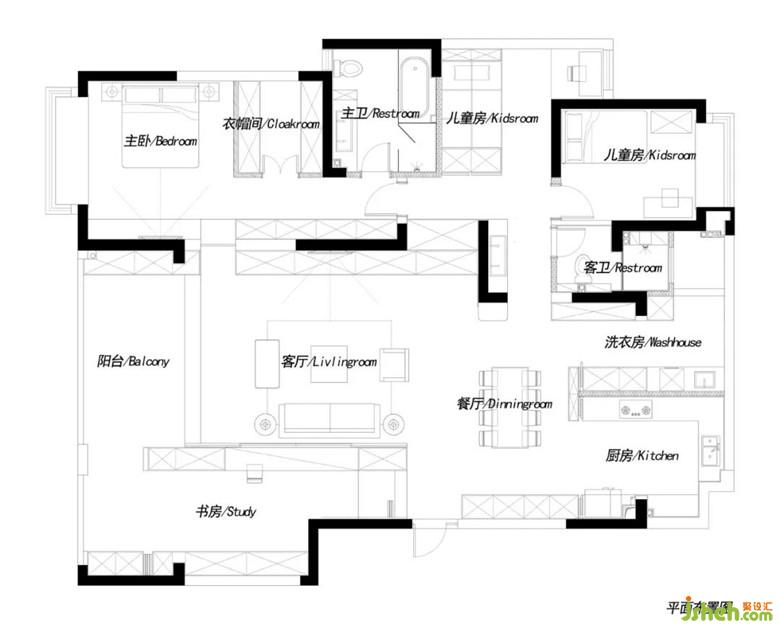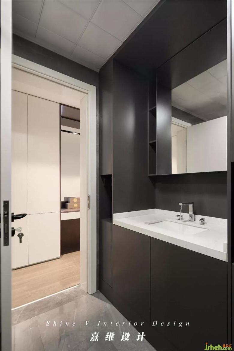 ▲起居空間與居住空間走道位置的重新規(guī)劃,讓客衛(wèi)干濕分離得以完全實現(xiàn),干區(qū)被調(diào)整到一面承重墻的小夾角中,客衛(wèi)位置的微調(diào)依然緊鄰兒童房,又變得更方便起居空間使用。