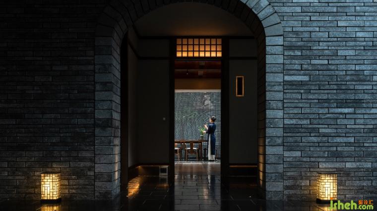 The golden bricks are still, while the light is diffused; the windows are still, but the trees rustle; the screen paintings are still, yet the contemplative mind flows. Wherever one stands, the space has a sense of depth and movement. Sloped horsehead walls, deconstructed ruyi gates, columns, and latticed windows appear and disappear in layers. Wood, stone, paper, lacquer—these materials, with their rich textures, construct the scene, and more importantly, they build emotion.