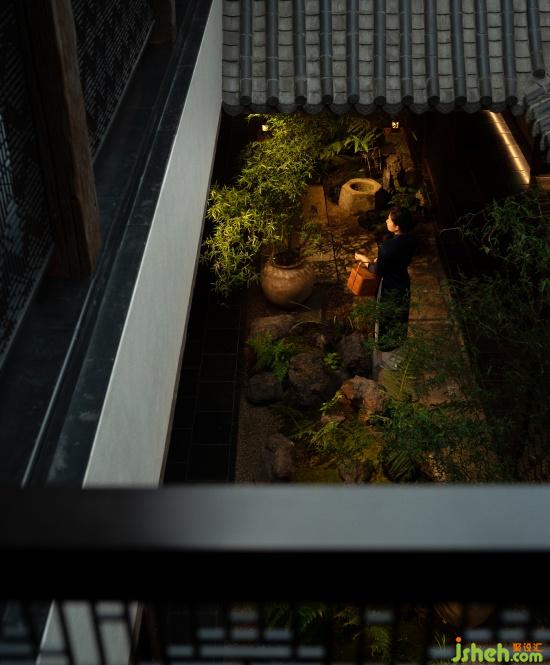 提籃陳列柜提示著一個(gè)不容薄待的大徽州,透過(guò)格柵,茶室在環(huán)游的盡頭靜待來(lái)客。