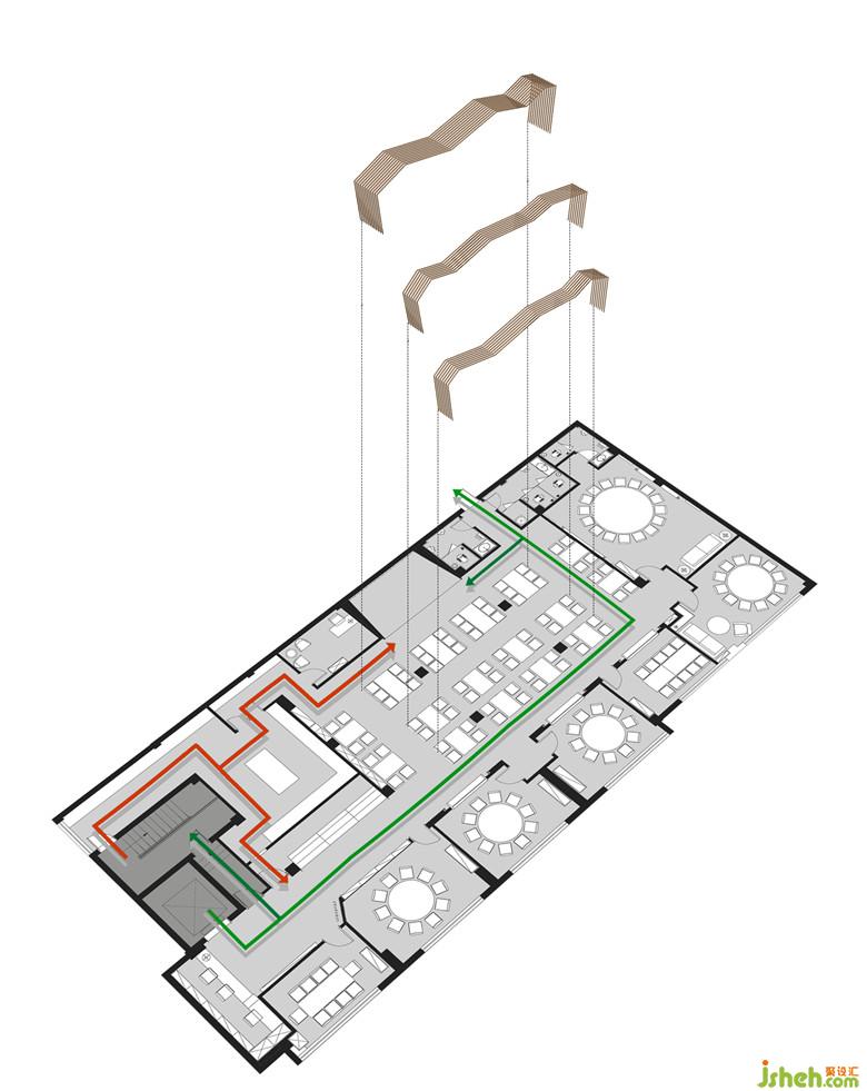 通過(guò)鏡面效果將整個(gè)空間置于一種無(wú)限延伸的錯(cuò)覺當(dāng)中。舞臺(tái)正對(duì)面的三個(gè)包間通過(guò)透明玻璃與大廳相融合,特定情況下既能保證體驗(yàn)者的私密性,又能讓包間里的用戶感受到大廳里駐唱歌手所帶來(lái)的現(xiàn)場(chǎng)感官體驗(yàn)。
