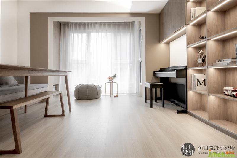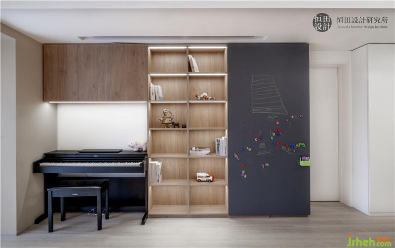 休閑陽臺(tái)規(guī)劃成了兒童活動(dòng)區(qū)。不但預(yù)留了充足的收納空間,室內(nèi)設(shè)計(jì)師底部還做了抬高處理,塞入兒童也能使用的成品收納箱,讓孩子養(yǎng)成自己的收納習(xí)慣,妥善保管、隨時(shí)歸位。