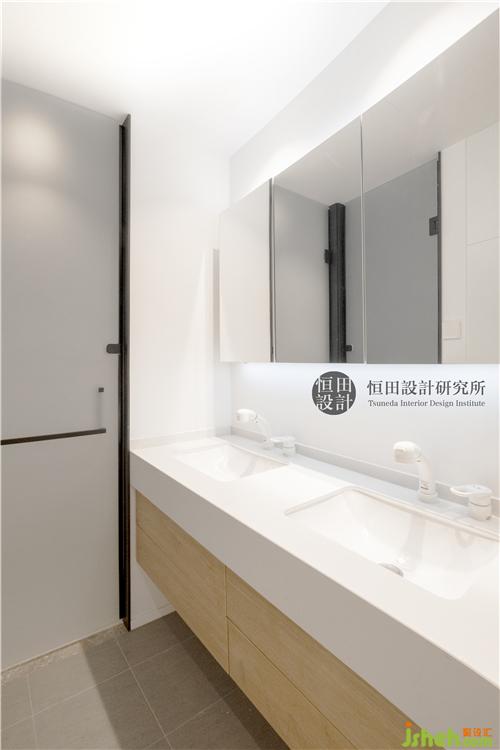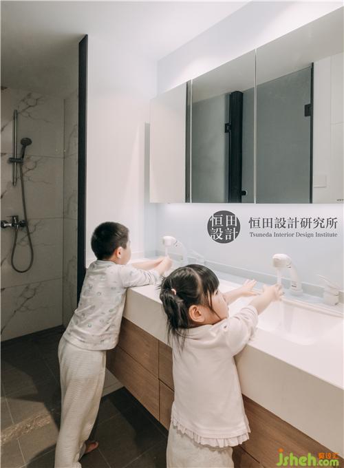 衛(wèi)生間做成了三分離,兩個(gè)水盆,不但提高了高峰期的衛(wèi)生間利用率,也保證了三代隱私。鏡柜內(nèi)有收納空間,平時(shí)將洗漱用品,顯得臺面整潔。內(nèi)部預(yù)留插座點(diǎn)位,方便剃須刀、電動牙刷等電器充電與使用。