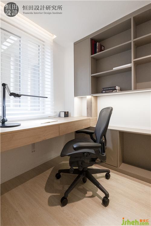 為了滿足男女主人的科研與學(xué)習(xí)目的,室內(nèi)設(shè)計(jì)師為書房提供了充足的照明,以及不錯的收納空間。關(guān)上書房門,可以應(yīng)付偶爾通宵加班的需要,還不會影響到在主臥休息的家人。