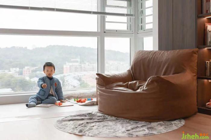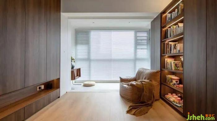 室內(nèi)設(shè)計(jì)師根據(jù)屋主的喜好,整屋采用了胡桃色作為主色調(diào),玄關(guān)設(shè)置了頂天立地的高柜,為一家三口打造了充足的收納。