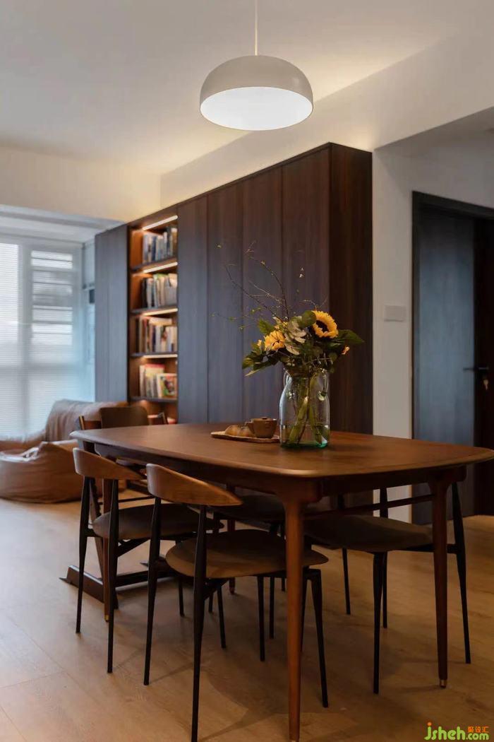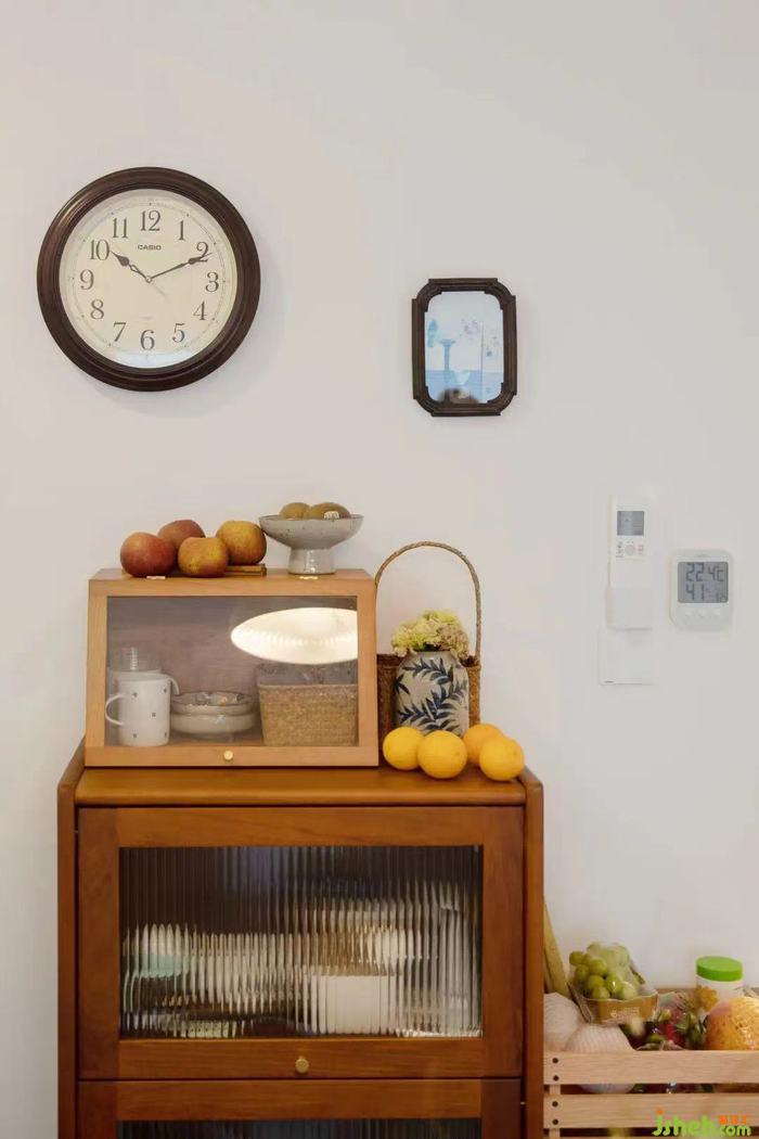 屋主希望餐廳區(qū)域能有一個(gè)儲(chǔ)物柜收納一些杯子茶具,咖啡壺等物品,室內(nèi)設(shè)計(jì)師在這個(gè)空間我們沒有再做定制,而是采用了小巧的成品柜。