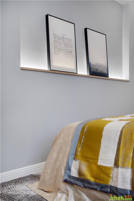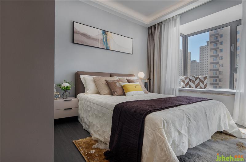 客臥的飄窗搭配雙簾,自然光線流入房間,時(shí)而開(kāi)放時(shí)而隱秘;精美床品,腳邊花毯,整體氛圍令人見(jiàn)之心生柔軟。以居者為上,還原舒適本真,便是精致之作。
