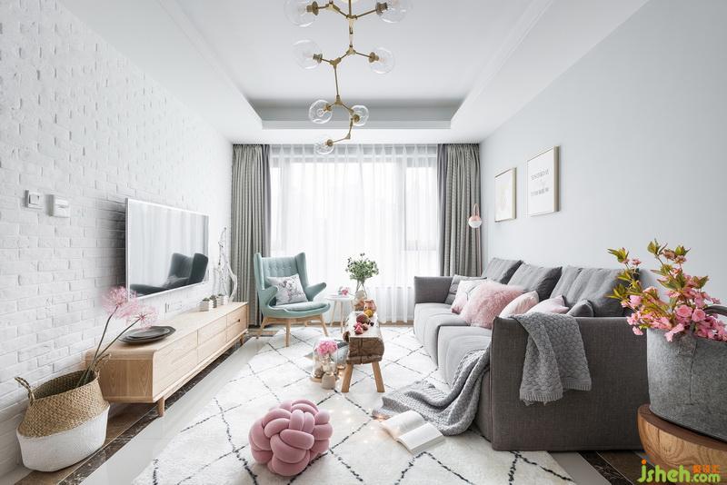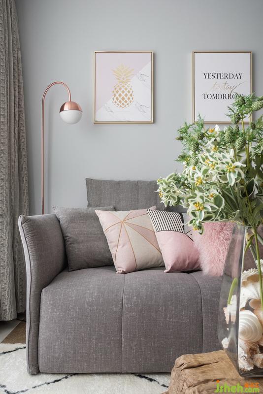 單身公寓的裝修風(fēng)格選擇起來(lái)很有局限性,面積太小,過(guò)于繁雜的風(fēng)格很難體現(xiàn),根據(jù)對(duì)業(yè)主自身氣質(zhì)的印象以及具體要求,把設(shè)計(jì)風(fēng)格定位在了簡(jiǎn)潔清爽的清新北歐風(fēng),并在此基礎(chǔ)上呈現(xiàn)了一個(gè)充滿少女感的粉色故事,滿足了業(yè)主純真的公主夢(mèng),在自然、流暢的空間中搭配以粉色為主的清新夢(mèng)幻的色彩,營(yíng)造了一方溫馨而恬靜的少女小天地。粉色,甜美而嬌艷,柔情又純真,而高級(jí)灰的低調(diào)內(nèi)斂,與悅動(dòng)?jì)善G的粉色不期而遇,好比交響樂(lè)高低音的完美融合,空間層次更加豐富。為了打造一個(gè)不失優(yōu)雅又不失溫柔的女性空間,我們室內(nèi)設(shè)計(jì)師以高級(jí)灰色作為背景,裝飾同色窗簾,以粉色系的家居飾品為主,配以簡(jiǎn)潔的幾何及條紋圖案,增添現(xiàn)代都市感。邊桌條凳等小家具裝飾選擇原木色,燈具和部分飾品選擇有線條美感或者玫瑰金色相結(jié)合的,提升空間氣度與質(zhì)感。