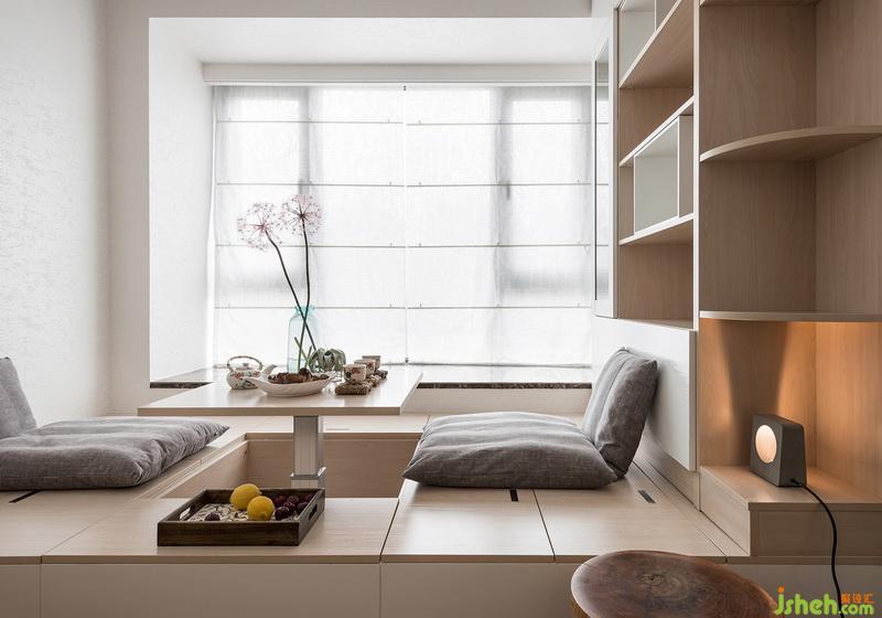 室內設計師把次臥打造成茶室和臥室兩用的空間,做成榻榻米床。因為采光很好,業(yè)主的父母偶爾過來小住時,業(yè)主便可以陪二老喝茶聊天曬太陽,又可以留他們過夜休息。