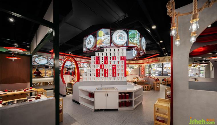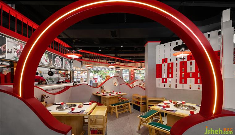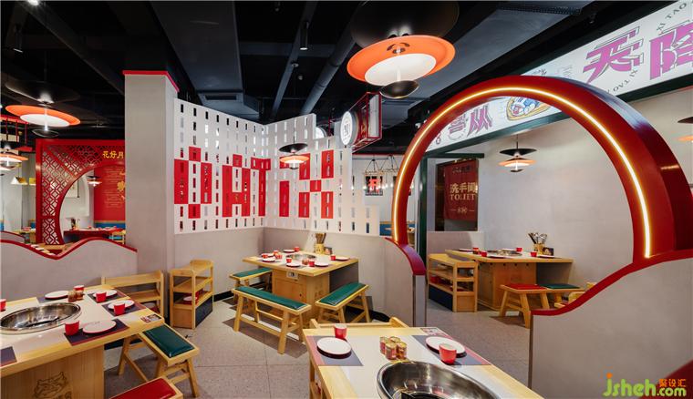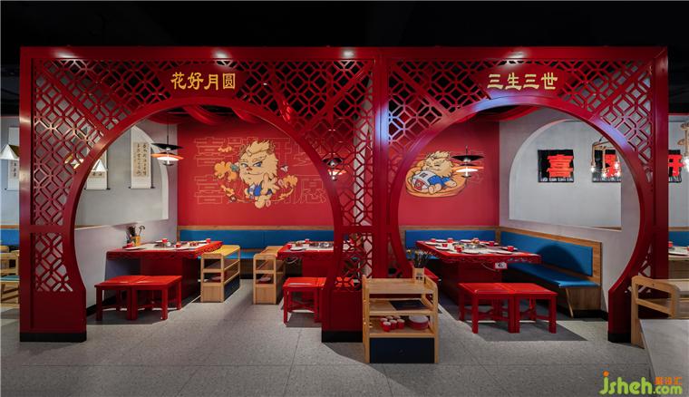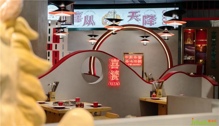 無論是視覺呈現(xiàn)上,還是實用便捷上,都有著無可比擬的競爭性,成都喜饕餐廳設計利用洞房花燭,喜從天降,久逢好友、金榜題名等大場景與火鍋用餐區(qū)相結合。