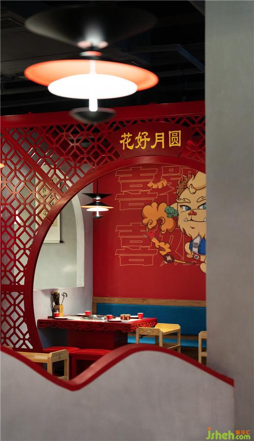 成都喜饕餐廳設計沿用了中國傳統(tǒng)神獸饕餮,所謂饕餮現(xiàn)身,瑞獸出世,神獸庇佑,福運繽至,又將中國傳統(tǒng)喜文化融入其中,因美好團聚,享吉祥美意,這就是喜饕的意義。
