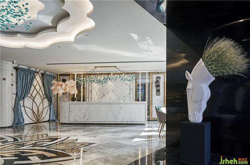 前廳的高度是設(shè)計(jì)的一個(gè)關(guān)注點(diǎn),由于本身的構(gòu)造問題,無法給予大堂充分的伸展空間,因此后期為了避免壓低原本尚不充足的空間,需要同時(shí)考慮燈飾方面的舒適程度。