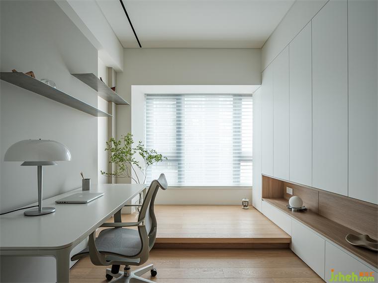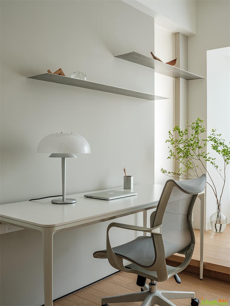 工作室也具備一家人互動(dòng)的可能,男主人的辦公桌,裝修設(shè)計(jì)女主人和孩子玩耍的地臺(tái),各安一隅,歲月靜好。訪客來時(shí),關(guān)上移門與隔斷簾,鋪好床褥,又是一夜安眠。