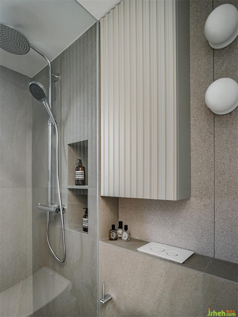 89㎡的空間中,我們?cè)O(shè)置了連排柜體,實(shí)現(xiàn)功能豐富的收納系統(tǒng)。但另一方面,大體量柜體必然帶來視覺上的壓迫感。我們利用開放格形成柜體的分區(qū),類似大自然中河川形成的自然分隔,裝修設(shè)計(jì)并暗示其功能上的區(qū)分。柜體消除了任何多余的線條,帶來利落的極簡(jiǎn)主義美感。