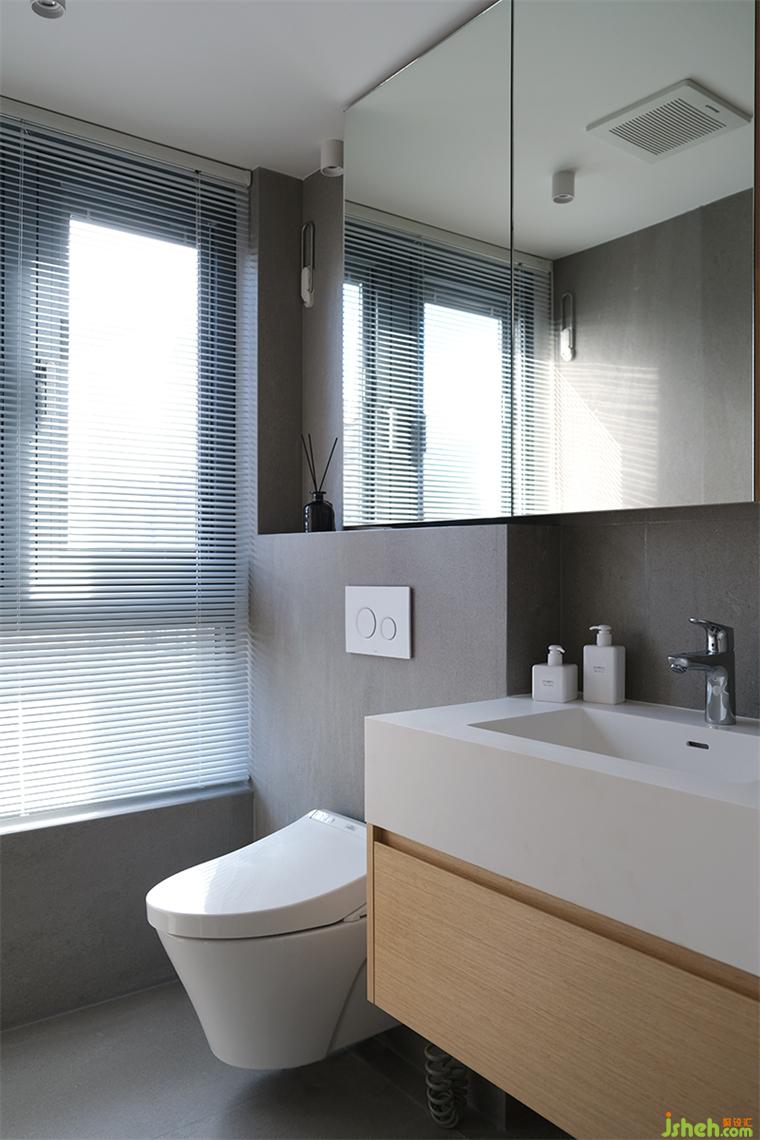 公衛(wèi)向外推出20公分后,設(shè)置了三分離衛(wèi)浴,給予更便利的使用體驗。裝修設(shè)計面盆區(qū)通過柱和墻之間的間隙,在私密的區(qū)域引入天光。