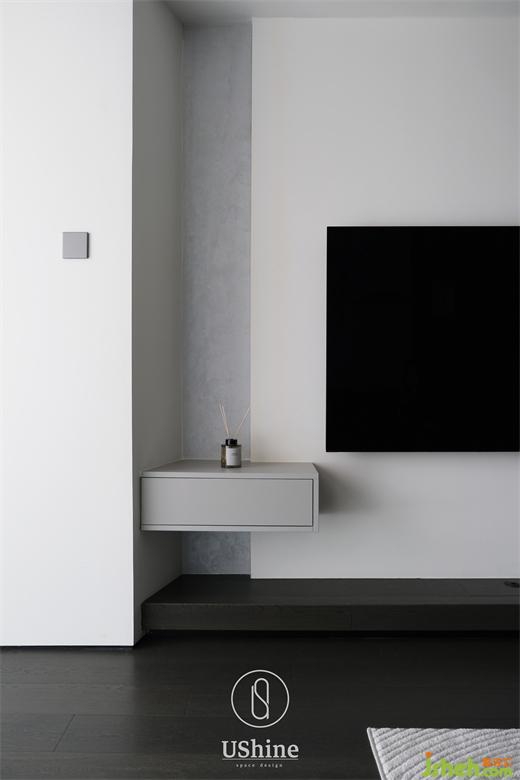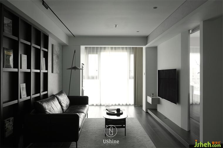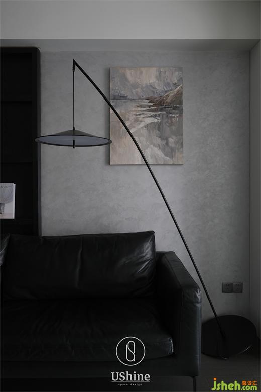 客廳采用冷調深色系,選用深色木質地板、砂巖瓷磚,搭配清水混凝土、不銹鋼材質,以及同色系的深色沙發(fā),凸顯紳士的居家質感。同時,冷調深色與白色的明暗對比,產(chǎn)生視覺后移的效果,深圳海納公館家裝設計以空間層次放大視覺感受。