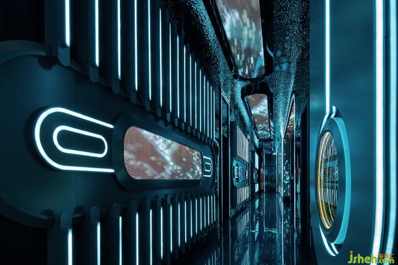 作為商業(yè)空間,視覺美感的呈現(xiàn)很重要,更重要的是實現(xiàn)“盈利”。體驗經(jīng)濟的消費邏輯下,“驚喜式體驗”是調(diào)動消費者情緒關(guān)鍵所在。我們通過“燈光模塊設(shè)計”進行氛圍造景,消費者移步至任一區(qū)域時,目之所及都是不斷變換的炫酷畫面,讓人從現(xiàn)實生活中跳脫出來,激發(fā)體驗欲望。