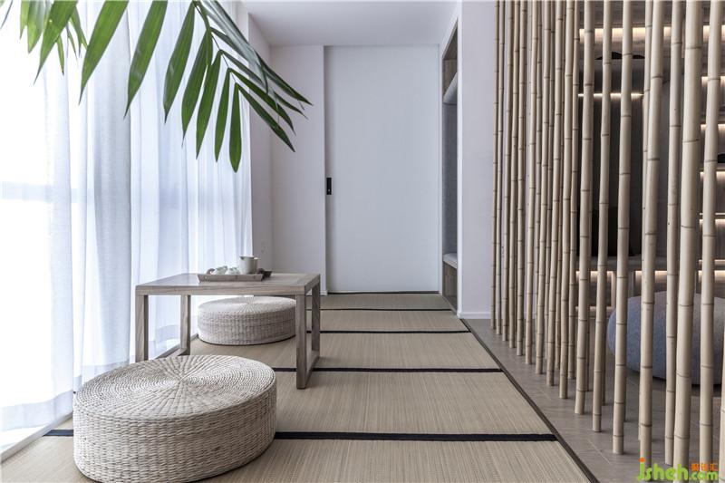 · 強(qiáng)調(diào)材料的自然特性,運(yùn)用將普通材質(zhì)的特性延展發(fā)揮到極致。質(zhì)樸的水泥漆,溫潤(rùn)的木飾面板,自然的竹子以及白色涂料。