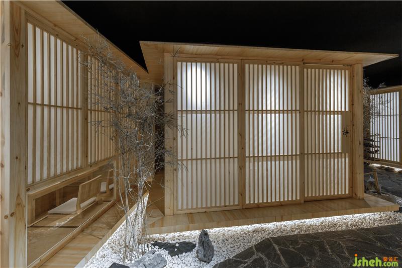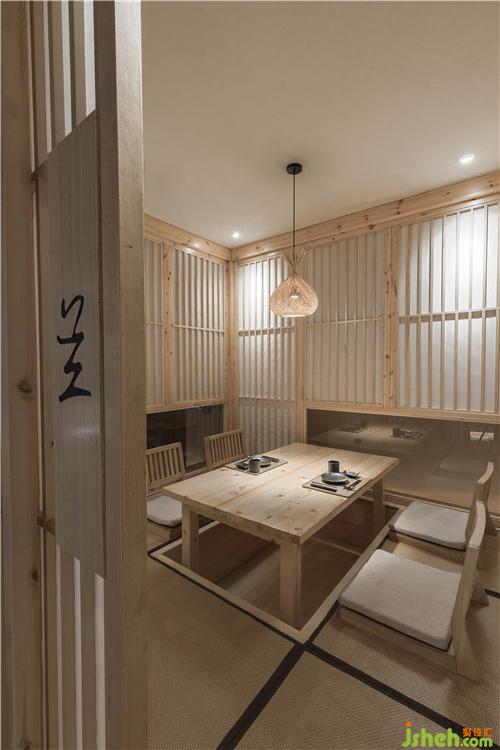 在二樓,留出了一大半?yún)^(qū)域,以包廂形式來提升消費檔次和就餐的隱秘性。包廂采用傳統(tǒng)的日式和室結(jié)構(gòu),全由木結(jié)構(gòu)構(gòu)筑而成。